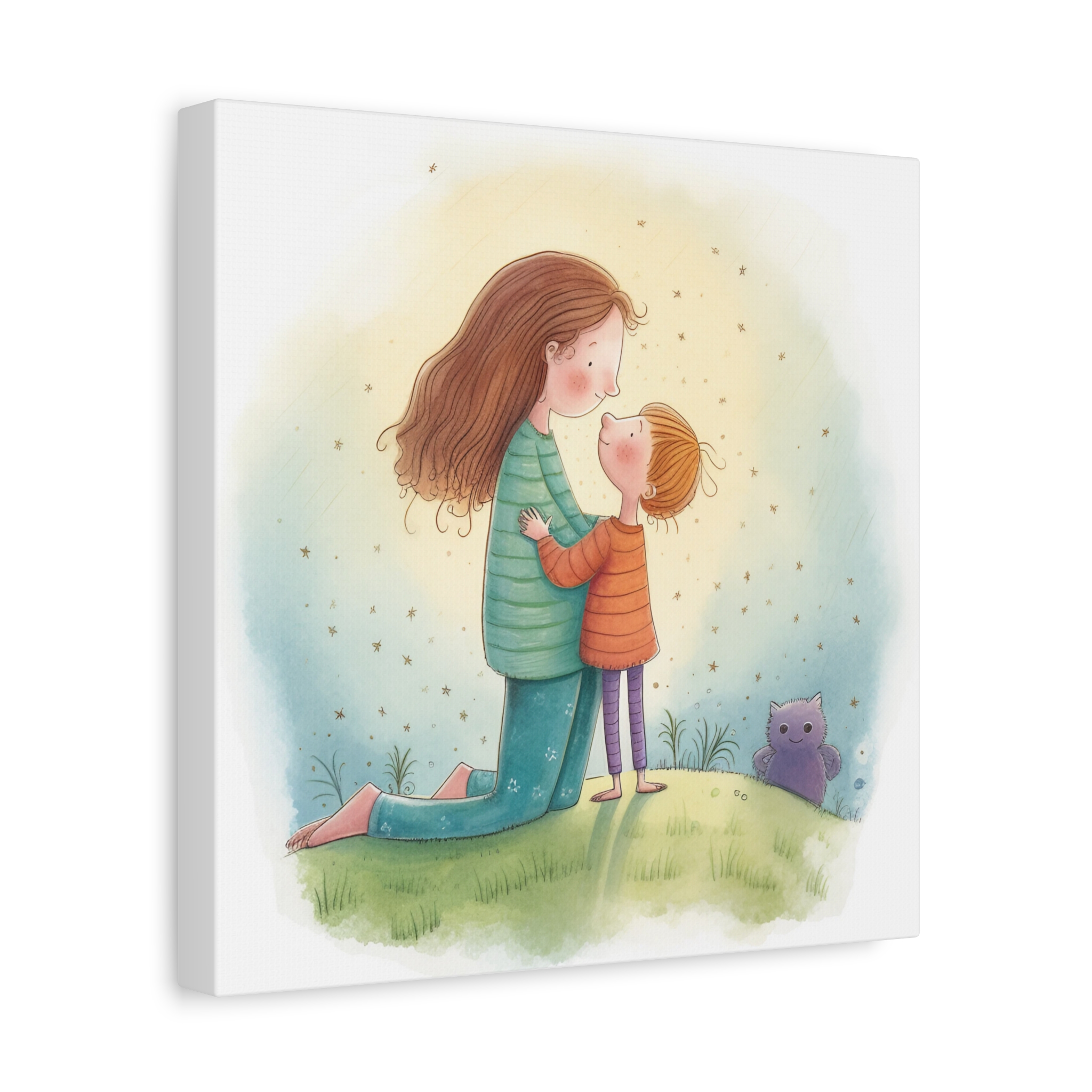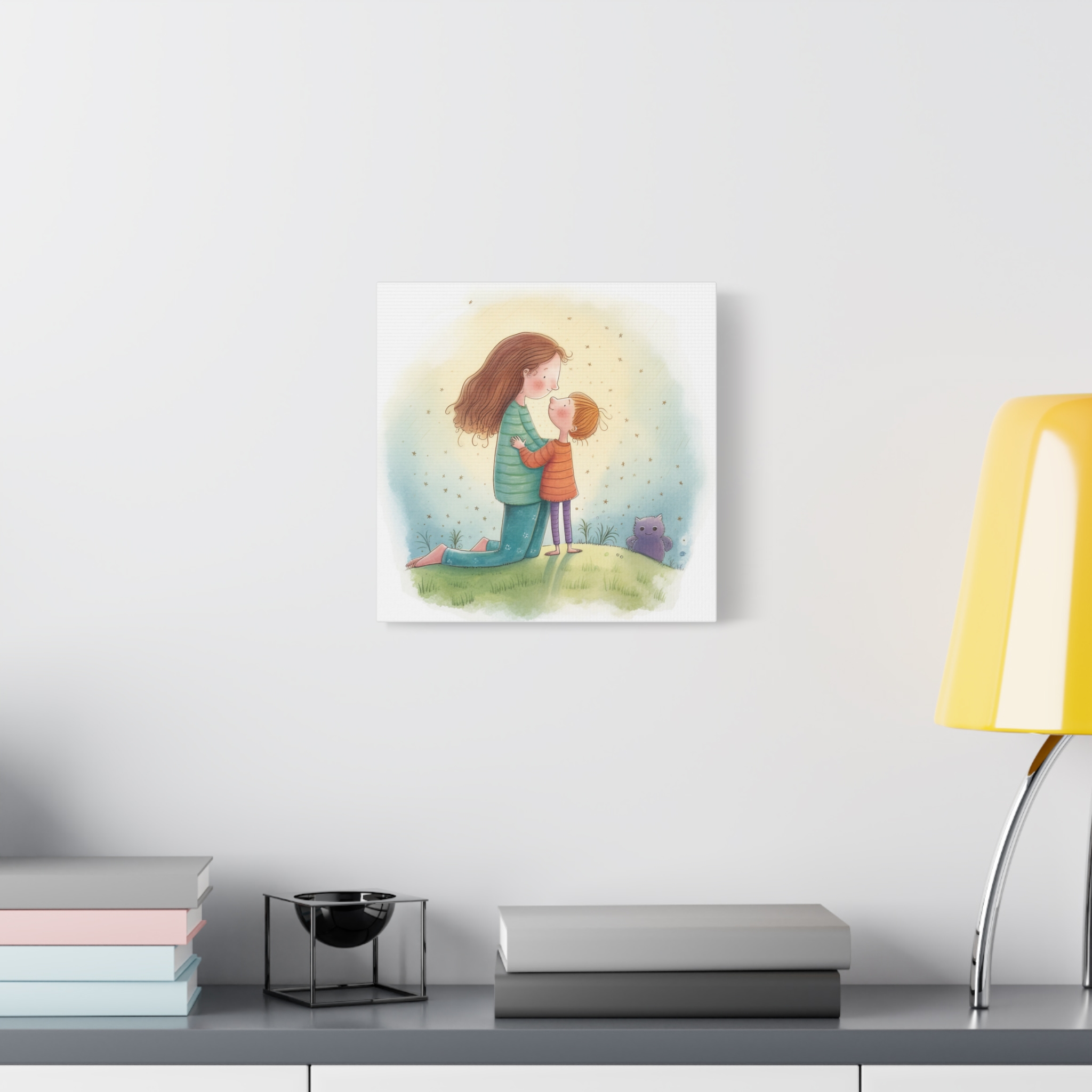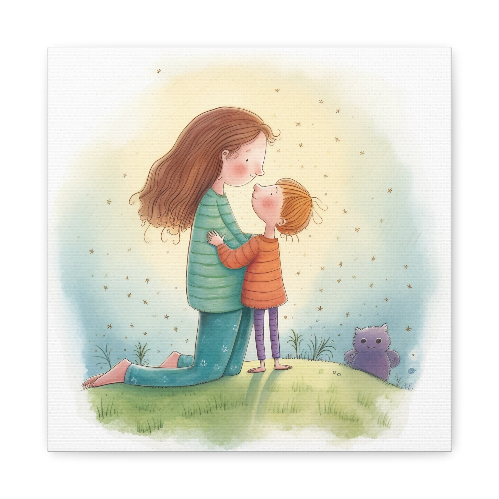 Enhance your living space with this stunning matte canvas print. Showcasing a heartwarming illustration of a mother and child from the cover of the Lenni Bear book “This is why I love my mom /mum”. This canvas radiates warmth and love, perfect for any family home. The soothing colors and gentle imagery create a cozy atmosphere, making it an ideal addition to nurseries or playrooms. This product is perfect for parents, grandparents, or anyone celebrating relationships, making it an excellent gift for Mother’s Day, family anniversaries, or just because. The versatile design fits seamlessly in any decor style, adding a personal touch to your walls.